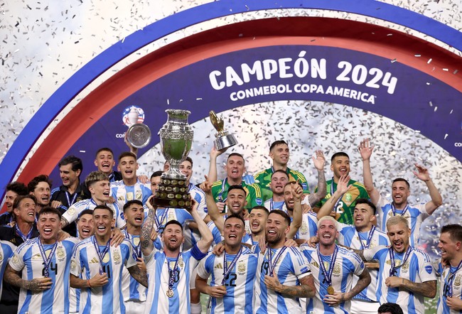 Teranyar, Lionel Messi mampu bawa Argentina juarai Copa America 2024 setelah Tim Tango menang 1-0 atas Kolombia pada laga final, Senin (15/7) pagi WIB di Hard Rock Stadium, AS (Reuters)