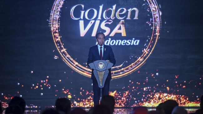 Presiden Joko Widodo menyampaikan pidato saat acara peluncuran Golden Visa di Jakarta, Kamis (25/7/2024).