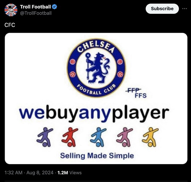 Meme Chelsea yang diledek "gatal". Lihat pemain bagus sedikit, maunya langsung beli! Foto: dok. Internet/X (Twitter)