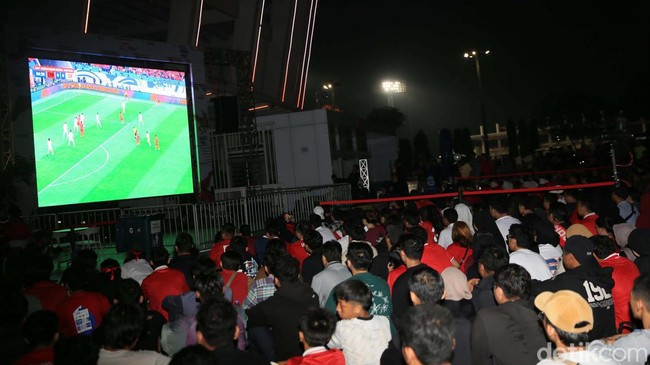 Jakarta - Warga menonton bersama pertandingan kualifikasi piala dunia China Vs Indonesia di kawasan GBK, Jakarta, Selasa (15/10). Di pertandingan itu Indonesia kalah 2-1.