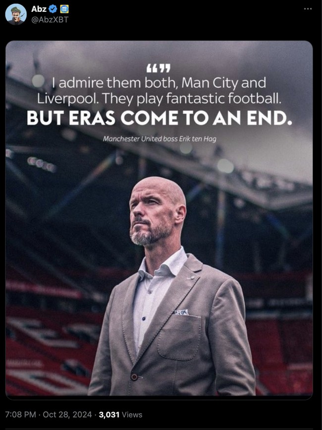 Kalimat yang pernah diucapkan Erik ten Hag ini ramai berseliweran lagi usai "era" dirinya berakhir di MU. Foto: dok. Internet/X (Twitter)
