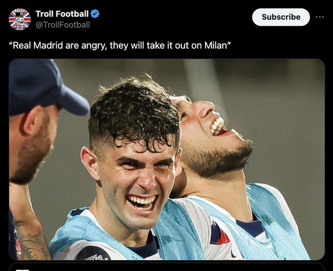Madrid mau lampiaskan kekalahan dari Barcelona ketika menghadapi Milan? Yang ada malah diketawain nih. Foto: dok. Internet/X (Twitter)