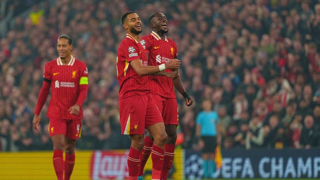 Liverpool ada di puncak klasemen dengan 12 poin usai meraih empat kemenangan. Mereka mengalahkan AC Milan 3-1, Bologna 2-0, RB Leipzig 1-0, dan terbaru Bayer Leverkusen 4-0. Foto: NurPhoto via Getty Images/NurPhoto