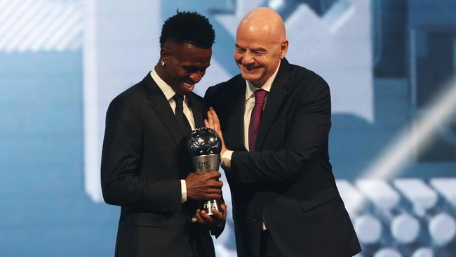 Jakarta - Vinicius Junior dinobatkan sebagai pemain putra terbaik FIFA 2024. Senyum bahagia pun terpancar dari penyerang Real Madrid tersebut.