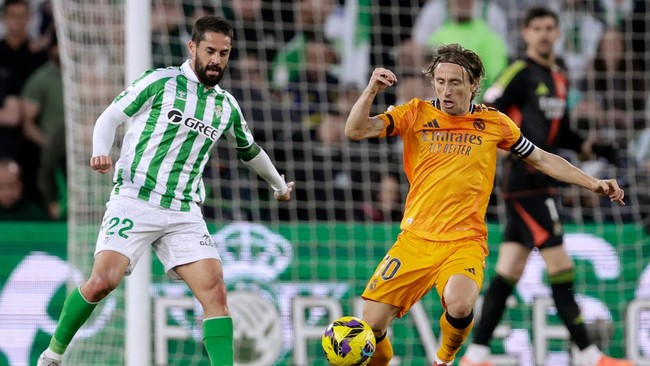Real Betis mengalahkan Real Madrid 2-1 dalam lanjutan Liga Spanyol, Minggu (2/3/2025) dini hari WIB. Dua gol Betis dicetak Isco. (Foto: Getty Images/Soccrates Images)