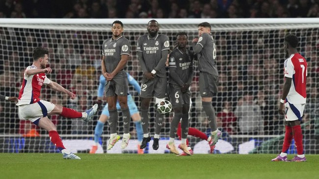 Jakarta - Declan Rice membantu Arsenal menggilas Real Madrid lewat dua gol tendangan bebasnya. Berikut 5 pemain yang mampu melakukannya di di Liga Champions.