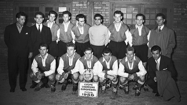 Stade de Reims lolos ke final edisi pertama European Cup pada musim 1955-56, namun kalah 3-4 dari Real Madrid di Paris. Kedua tim kembali bertemu di final tiga tahun berselang di Stuttgart dan Madrid kembali menang 2-0. Foto: Corbis/VCG via Getty Images/Universal
