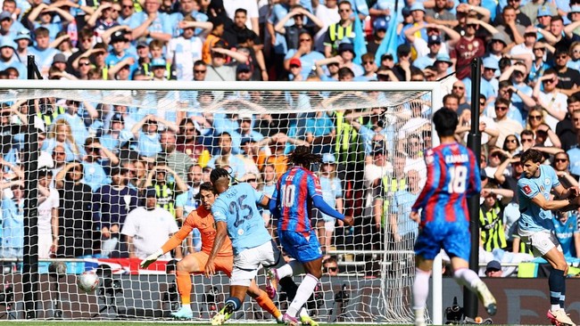 Manchester City melawan Crystal Palace di final Piala FA 2024/2025 di Stadion Wembley, Sabtu (17/5/2025). (Foto: Action Images via Reuters/Andrew Boyers)
