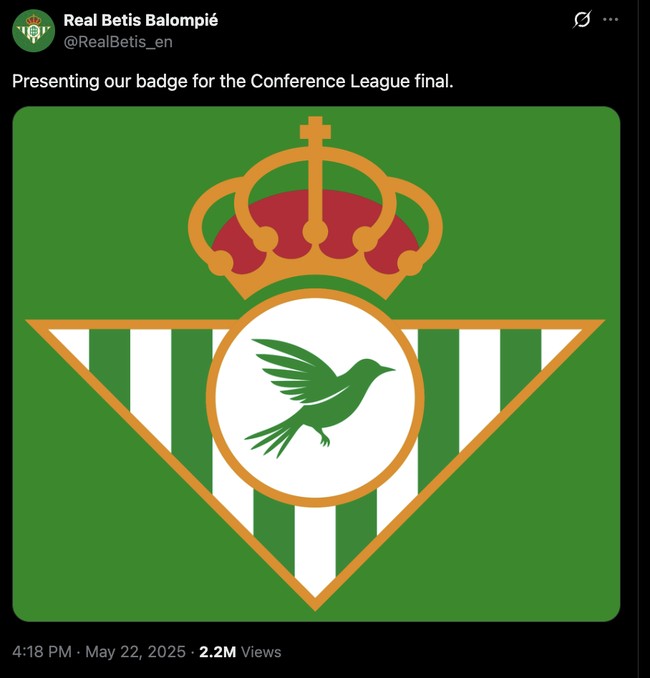 Pada tengah pekan depan Real Betis akan berhadapan dengan Chelsea di final Conference League. Berharap trofi, Betis pun berkelakar ganti logo klub jadi bernuansa burung. Foto: dok. Internet/X (Twitter)