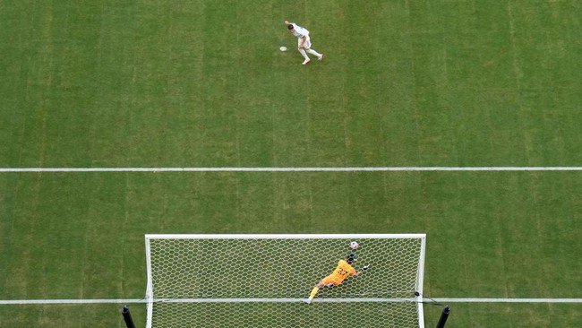 Teranyar, Federico Valverde gagal masukkan bola dari titik penalti saat Real Madrid diimbangi Al Hilal 1-1 di Piala Dunia Antarklub. Tembakannya ditepis Bono (REUTERS/Marco Bello)