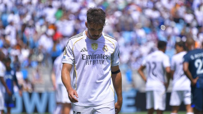 Raul Asencio jadi pemain teranyar Real Madrid yang kena kartu merah. Itu didapatinya saat Madrid hadapi Pachuca di Piala Dunia Antarklub 2025 (Getty Images/Jam Media)