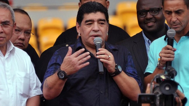 Diego Maradona adalah legenda yang sangat keras mengecam Israel. Pada 2014, ia pernah mengatakan bahwa dirinya adalah suporter nomor satu Palestina. Si Tangan Tuhan itu juga menyebut serangan Israel ke Palestina sangat memalukan. (Foto: BAY ISMOYO/AFP via Getty Images)