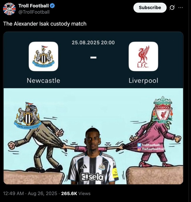 Jakarta - Pertandingan Newcastle vs Liverpool berlangsung sengit. Apalagi di "tengah" keduanya kini ada sosok Alexander Isak. Laga ini pun diwarnai sejumlah meme kocak.