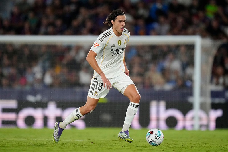 Carreras masih berusia 22 tahun. Dirinya adalah jebolan akademi Real Madrid, lanjut menimba ilmu di MU, kemudian Madrid membelinya dari Benfica di musim panas 2025 seharga 50 juta Euro (Getty Images/Eurasia Sport Images)