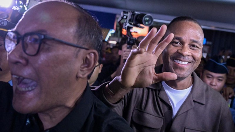 Ini adalah momen Kluivert menebar senyum setibanya di Terminal 3 Bandara Internasional Soekarno Hatta, Tangerang, Banten, Sabtu (11/1/2025), usai ditunjuk melatih Timnas Indonesia. Foto: ANTARA FOTO/Fauzan