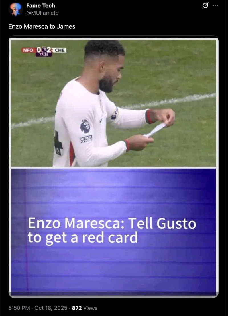 Chelsea pun kini diledek menjadi Red Card FC saking hobi dapat kartu merah. Foto: dok. Internet/X (Twitter)