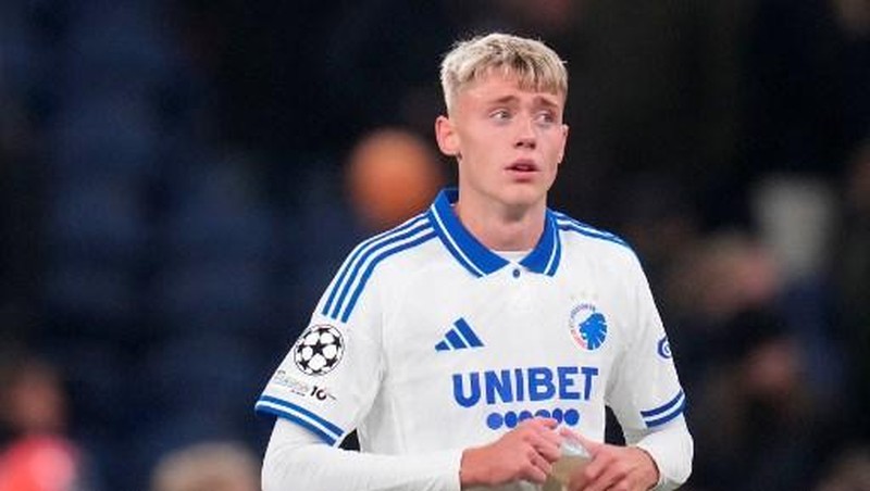 Viktor Dadason mencetak gol hiburan untuk Copenhagen saat kalah 2-4 dari Borussia Dortmund. Ia baru berusia 17 tahun 113 hari. Foto: AFP/LISELOTTE SABROE