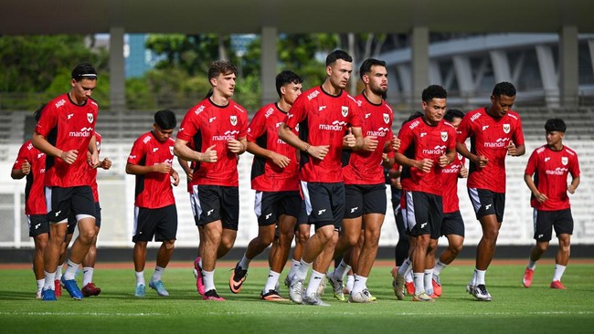 Jakarta - Timnas Indonesia U-23 menjalani latihan di Stadion Madya jelang laga uji coba melawan Mali. Sesi ini menjadi persiapan untuk memperkuat strategi tim.
