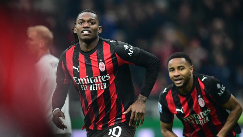 Rossoneri pun kembali menunjukkan daya saing mereka dalam perburuan gelar, dengan Leao menjadi bintang penentu kemenangan di malam yang penuh tensi tinggi. REUTERS/Daniele Mascolo