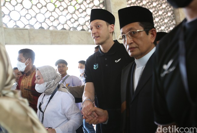 Pantauan detikcom, Jumat (27/5/2022), Mesut Ozil tiba pukul 11.35 WIB. Ia ditemani oleh imam besar Masjid Istiqlal, Prof. Dr. KH. Nasaruddin Umar.