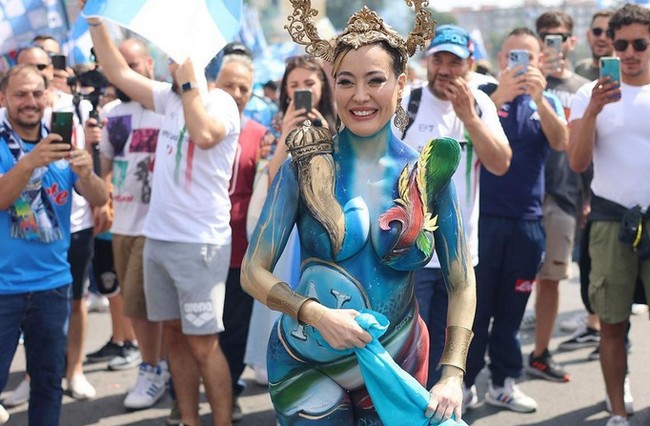 Dilansir dari Daily Star, model asal Kota Naples yang juga fansnya Napoli, Paola Saulino mencuri perhatian. Dirinya ikut dalam perayaan juara di jalanan Kota Naples dengan hanya berbalut body painting!