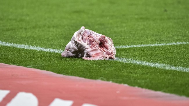Laga Derby Paulista antara Corinthians kontra Palmeiras diwarnai insiden tak biasa. Fans melempar kepala babi ke lapangan!