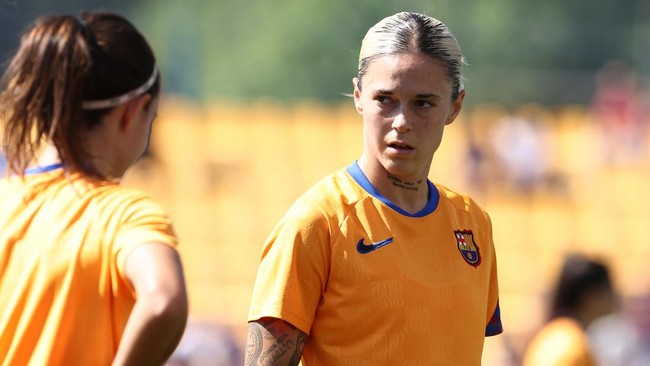 Momen itu terjadi dalam pertandingan Liga Putri Spanyol antara Espanyol vs Barcelona di Stadion Ciutat Esportiva Dani Jarque, Minggu (9/2/2025). Di menit ke 15, Mapi Leon terlihat ditempel ketat pemain Espanyol, Daniele Caracas, dalam momen tendangan bola mati.