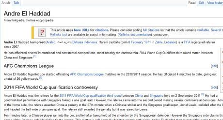 Yang menarik, profil El Haddad di situs Wikipedia sudah "diacak-acak" kemungkinan besar oleh orang Indonesia. Nama lengkapnya ditulis menjadi Andre El Haddad kampreet, juga ada kata-kata tidak senonoh yang ditempelkan pada wasit berusia 41 tahun itu.