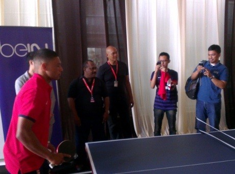Dua pemain andalan 'The Gunners' tersebut unjuk kebolehan bermain tenis meja dengan dua orang perwakilan dari Arsenal Fans Club, dalam acara Meet & Greet yang diselenggarakan oleh beiN Sport Channel di Keraton at The Plaza, Jakarta, Sabtu (13/7/2013) pagi WIB.