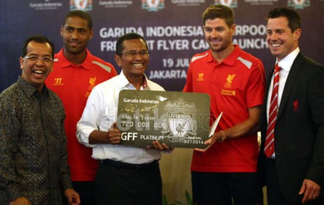 Peluncuran GFF edisi Liverpool ini dilakukan secara simbolis di Hotel Mulia Senayan, Jumat (19/7/2013) sore WIB, melalui penyerahan dua platinum card GFF edisi Liverpool oleh Dirut Utama Garuda Indonesia, Emirsyah Satar, kepada Gerrard dan Johnson.