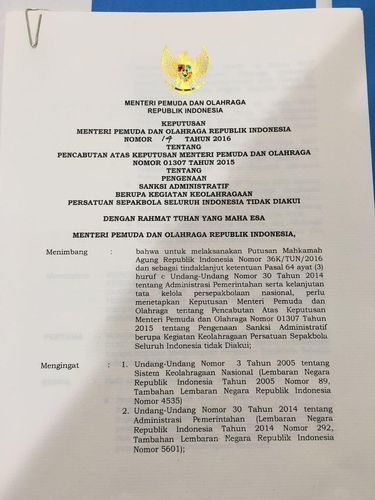 Menpora sudah mengumumkan pencabutan pembekuan PSSI sejak tadi malam, Selasa (10/5). Namun, Menpora baru memberitahukan sekaligus menunjukkan isi surat tersebut hari ini, Rabu (11/5).