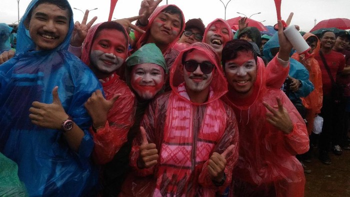 Dari pantauan detikSport di lokasi stadion, suporter sudah mulai meramaikan stadion tersebut. Rombongan suporter yang rata-rata berkaus merah ini mulai memenuhi stadion meski hujan gerimis.