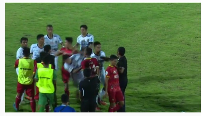 Kejadian bermula ketika Bali United U-19 menyamakan kedudukan melalui Dalen Ramadan pada menit ke-93. Ketika itu pemain Bhayangkara U-19 melakukan protes kepada wasit namun pertandingan akhirnya dilanjutkan.