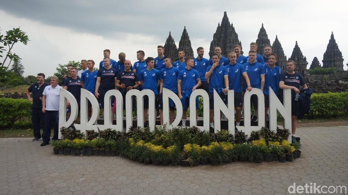 Pada Rabu (8/1/2018), skuat Islandia tiba di area Candi Prambanan, Yogyakarta sekitar pukul 14.50 WIB dengan menumpang sebuah bus pariwisata. Cuaca yang mendung cukup tebal, tidak mengurangi antusiasme mereka.