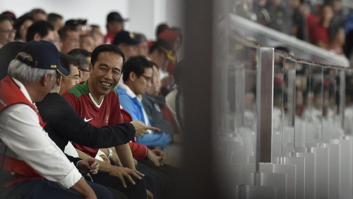 Jokowi pun sempat melontarkan candaan saat ditanya mengenai kekalahan timnas. Dengan wajah tersenyum, Jokowi mengatakan Indonesia sempat unggul meskipun akhirnya kalah telak.