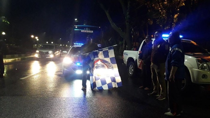 "Kekuatan pengawalan sekitar hampir 100 personel dari Polres se-Malang Raya dan satu peleton Brimob," ujar Kapolres Malang Kota AKBP Asfuri kepada wartawan saat sebelum pemberangkatan, Minggu dini hari.