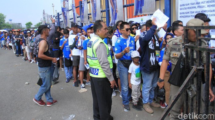 Pantauan detikSport, Selasa (12/11/2019) ribuan pendukung Persib yang mengenakan atribut serbabiru memenuhi semua pintu masuk ke Stadion Si Jalak Harupat. Pendukung Persib bahkan sudah berada di area stadion sebelum matahari di atas kepala.
