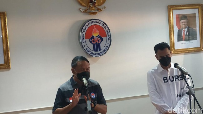 Artis Raffi Ahmad datang ke Kantor Kemenpora, Rabu (27/5/2021). Ia datang dan disambut Menpora Zainudin Amali untuk membicarakan pengembangan bisnis sepakbola.