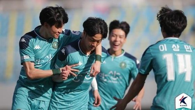 Ansan Greeners untuk sementara mengungguli tamunya Gyeongnam FC dalam lanjutan K League 2, Senin (12/7/2021). Asnawi Mangkualam turut ditampilkan pada laga ini.