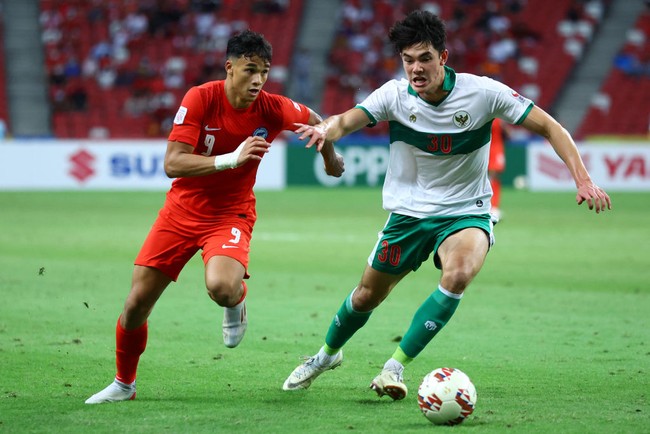 Ikhsan Fandi sempat dibuat kewalahan menghadapi bek-bek Timnas Indonesia pada semifinal leg pertama Piala AFF 2020, Rabu (25/12/2021). Pelatih Shin Tae-yong saat itu menurunkan tiga bek tengah.