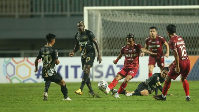 Dewa United vs Persis Solo berlangsung di Stadion Pakansari, Cibinong, Senin (27/12/2021) malam WIB. Persis langsung mengancam di menit pertama lewat Beto Goncalves, tapi tidak menghasilkan gol.