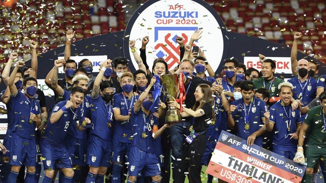 Piala AFF akhirnya dihelat juga mulai mulai 5 Januari yang dipusatkan di Singapura dan baru saja selesai, Sabtu (1/1/2022) malam WIB. Thailand muncul sebagai juara usai mengalahkan Indonesia lewat agregat 6-2.