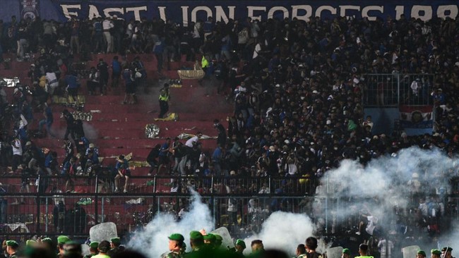 Peristiwa itu terjadi karena banyak penonton yang berdesakan, usai ditembaki gas air mata petugas. Penonton yang panik mencoba berebut keluar, sampai akhirnya terinjak-injak dan kehabisan nafas.