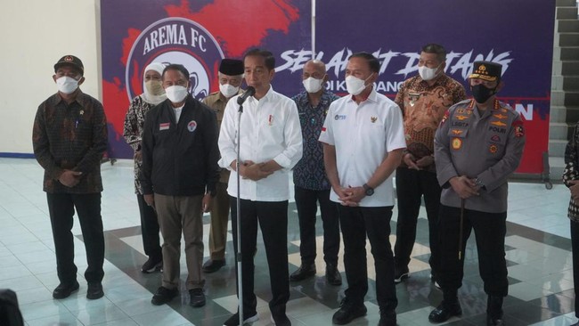 "Dari peristiwa ini kita harus perbaiki semuanya, manajemen pertandingan, manajemen lapangan, manajemen pengelolaan stadion," tutur Jokowi.