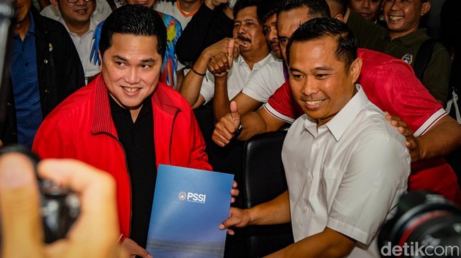Setelah La Nyalla Mahmud Mattalitti yang mendaftarkan diri sebagai bakal calon Ketua Umum PSSI Jumat kemarin, giliran Erick Thohir yang mengembalikan berkas pendaftaran, Minggu (15/1/2023).