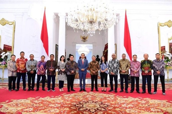 Senin (20/2) siang WIB, Erick Thohir beserta jajaran PSSI era 2023-2027 mendatangi Istana Negara, Jakarta. Presiden Jokowi pun menyambutnya.