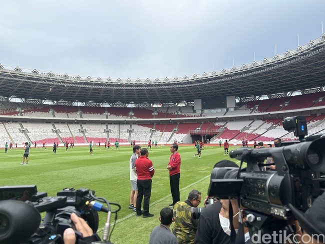 Stadion Utama Gelora Bung Karno (SU GBK) pada Sabtu (1/4/2023), Presiden Jokowi bersama Ketum PSSI Erick Thohir, Waketum PSSI Zainudin Amali, dan Kapolri Jenderal Listyo Sigit Prabowo menemui Timnas Indonesia U-20 dan Timnas U-22.