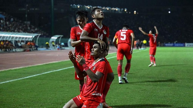 Indonesia sukses meraih kemenangan pada final SEA Games di Olympic Stadium, Phnom Penh, Selasa (16/6/2023). Pasukan Indra Sjafri menang 5-2 atas Thailand dalam drama yang berlangsung 120 menit.