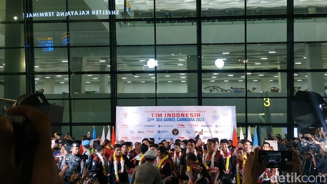 Timnas Indonesia U-22 sudah menginjakkan kakinya di Tanah Air usai meraih medali emas di SEA Games 2023. Garuda Nusantara disambut meriah ratusan masyarakat.