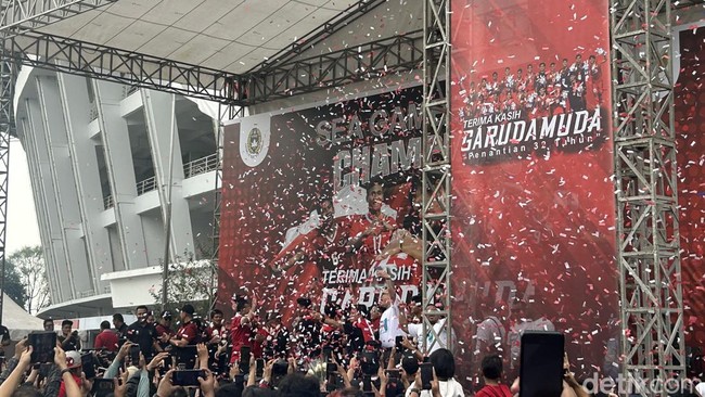 Sekitar dua jam menembus kawasan Bundaran HI, Timnas U-22 pun akhirnya tiba di kawasan Stadion Utama Gelora Bung Karno (SU GBK). Mereka disambut oleh ratusan orang yang sudah menunggu sejak pagi tadi dekat panggung yang disiapkan untuk menyambut penggawa Skuad Garuda.